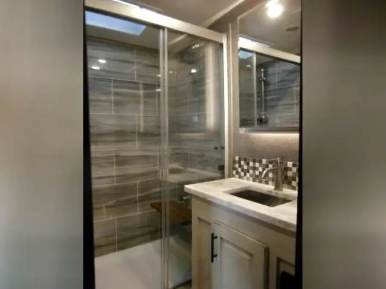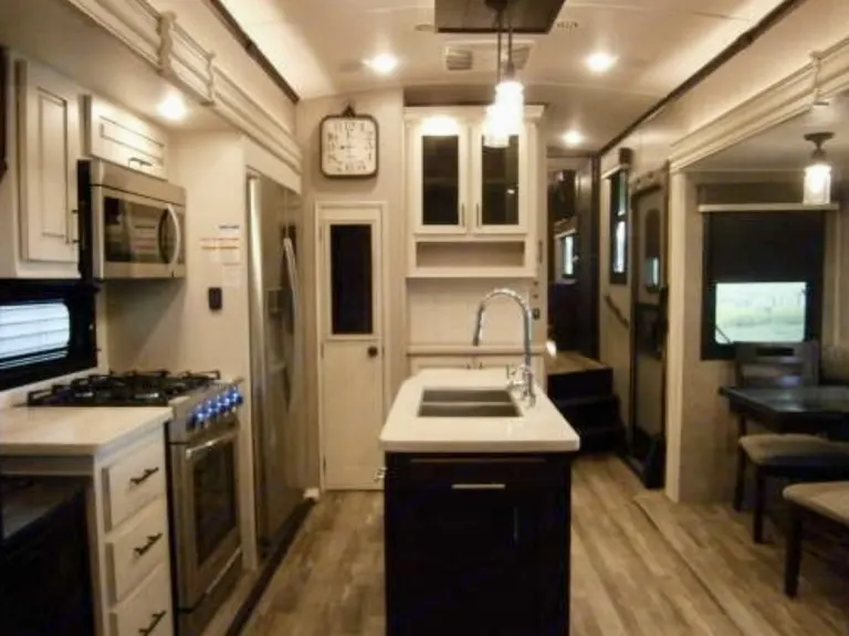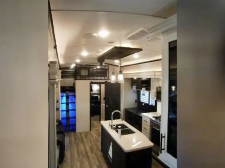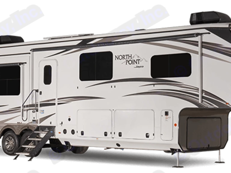 Stunning, like new, meticulously maintained Jayco North Point 373bhok fifth wheel. This fully loaded unit features large kitchen with residential appliances, rear slide out bunkhouse with half bath, loft with 2 twin beds and storage, spacious master suite with gorgeous full bathroom. The exterior boasts loads of storage, two full awnings and outdoor kitchen with Blacktop grill.• Highly sought after rear slide bunkhouse with wardrobe and television