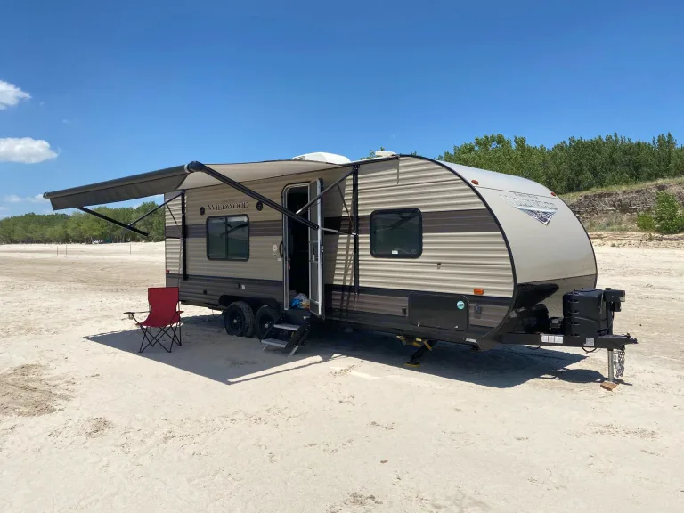 Very clean brand new trailer for use. Well maintained. Coffee maker and everything needed to make coffee included minus the coffee. The 24 foot Wildwood X-Lite is a great family camper. It has plenty of room for sleeping and living in the camper, while still being small enough to be an easy tow by almost any vehicle. Up front you will find a comfortable queen bed with storage along next to the bed. The front can be closed off for privacy from the rest of the camper. The kitchen is located in the middle as well with a nice sink, counter-top, 3 burner stove top with an oven, along with a microwave and a good sized refrigerator. The living space has a couch that folds out to a bed and a table that seats four that also folds down to a bed. In back is the large bathroom with great counter space. Inside is 24’ total length is 28’ insurance must be purchased from outdoorsy or trailer can not be rented. It’s for your protection and mine. Also, vehicle must have trailer brake installed on vehicle. Trailer weighs 4130lbs dry. What's includedTravel toothbrush and toothpaste provided. Pillows included. Indoor outdoor stereo. Tv and sound bar. Pots and pans in trailer for use. Plates, cups, bowls, and silverware for 8 provided. Couch and table transform into additional beds if needed. Curtain closes to provide privacy. Travel shampoo and conditioner included. All hoses and adapters needed for water and sewage. Linen is not provided. RecommendationsGreat trailer for boondocking or camping in a camp site with full hook up. Portable invertor Generator available for additional cost.Other things to noteAbsolutely no smoking inside trailer or a clean up of $200 will be imposed. Anything in trailer must be left in trailer after trip except one time use bathroom items. Dogs are allowed but cats are not as more people are allergic to cats than most.