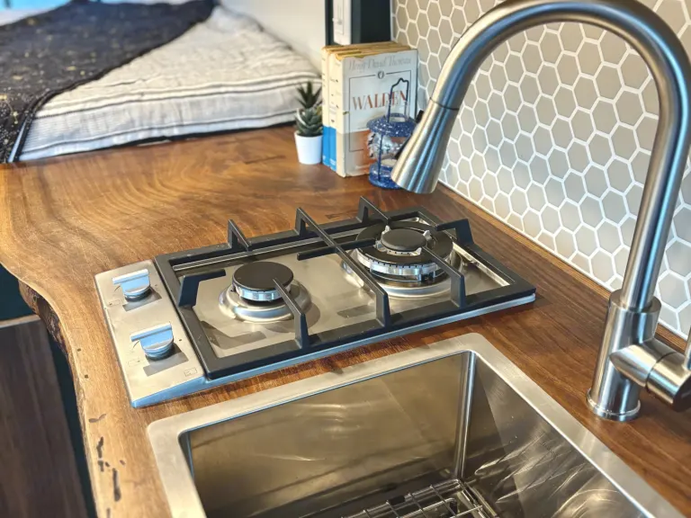 The Drifting Buoy fit our needs perfectly! We dry-camped Rockport and Freeport, as well as Blackwoods Campground in Acadia. We loved the flexibility of being able to do it all - cook, clean, shower, and use on-board power - with or without hookups or campground amenities. The storage area under the bed also came in handy, it really helped keep our living area tidy. We would absolutely book again, highly recommend!