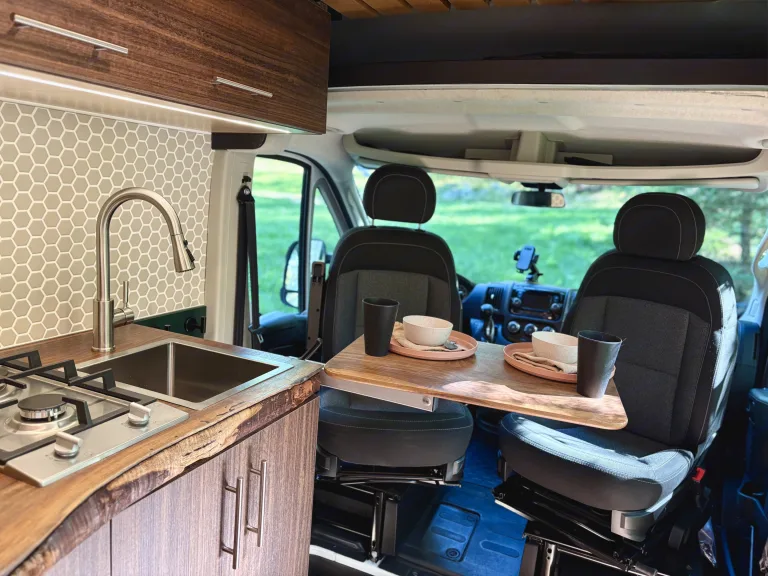 "Buoy" (v.): cause to become cheerful or confident.Welcome to our family-friendly, tree-hugging, shore-loving camper van! This fully equipped, off-grid, luxury van has everything you need to enjoy camping in any season. Custom built by Cascade Van of Oregon, no detail was missed. With seating and sleeping space for three, it's perfect for couples, small families, or friends looking to unplug and enjoy the outdoors.No campground hook-ups? No problem! This van is solar powered and completely self-contained; it's intuitive, easy to use, and worry-free. Feeling grimy? A hot outdoor shower and privacy tent are ready for you! The van seats 3, including a car seat safe passenger seat for your littlest adventurer. There is a full bed in the back as well as a Luno front cab airbed, plus all of the pillows and linens you could possibly need to stay warm and cozy.Ok, now the only thing to decide is where to go! We're happy to share our favorite spots, tips and tricks to make your camping dreams come true...so get buoyed!*Check us out on Instagram for local tips and highlights of our favorite spots. @thedriftingbuoyWhat's includedCookware & Kitchen