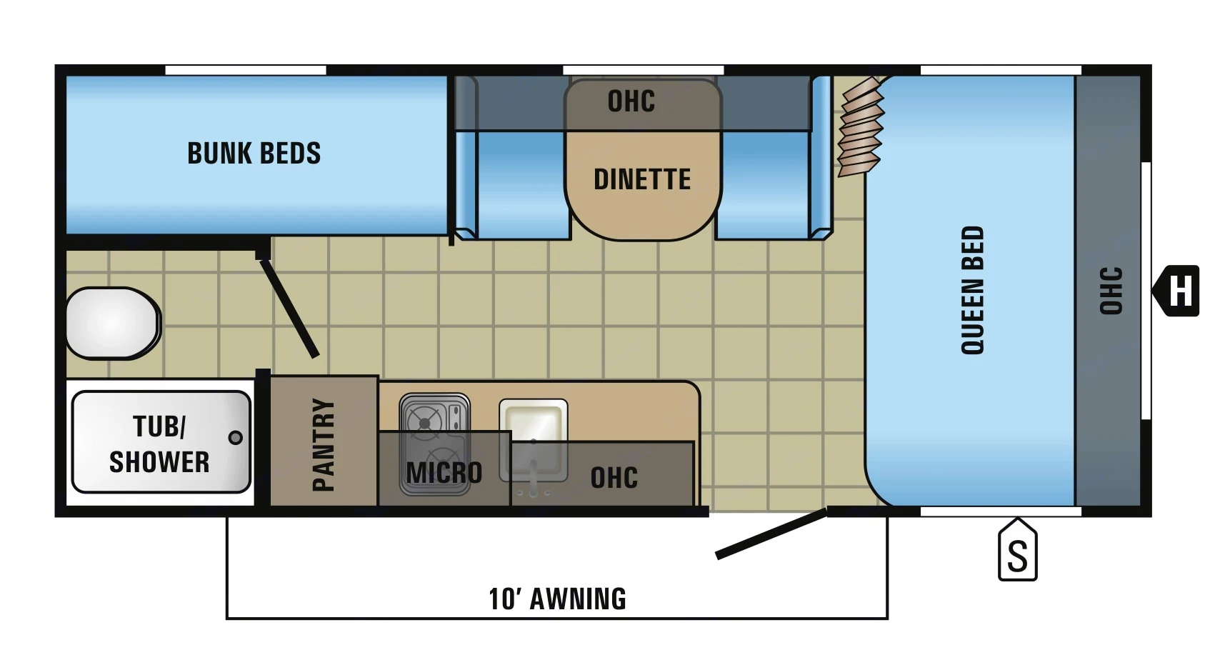 RV rental interior: cozy bunk beds with ladder, small seating area, and handy door hooks.. Jayco Jay Flight SLX 2017