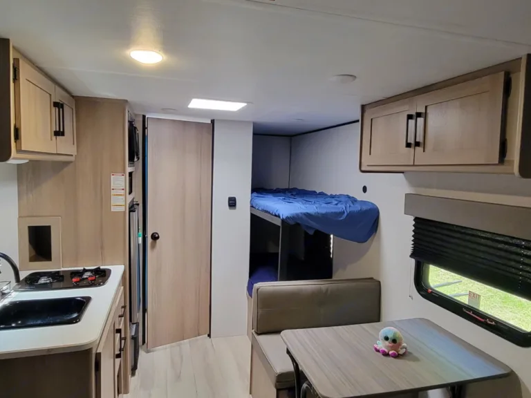 Our brand new, clean camper sleeps 3-5 people with area to dine & play games! It is perfect for the smaller family looking fore adventure