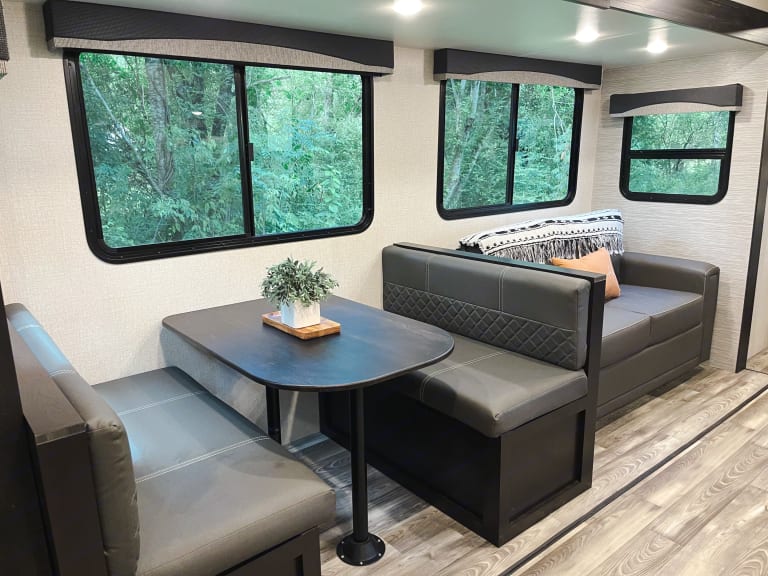 Embark on an unforgettable adventure along the picturesque Gulf Coast of Louisiana and Mississippi with our charming Travel Trailer! Get ready to experience the ultimate in comfort and convenience, as our camper is fully equipped with all the amenities you could possibly need.Whether you're bringing your furry friends or exploring with the little ones, our rig is not only dog-friendly and kid-friendly, but also thoughtfully stocked to enhance your camping trip. From the moment you step inside, you'll be greeted by fresh linens, fluffy towels, and a cozy atmosphere that invites relaxation.But, that's just the beginning of what awaits you! Picture yourself unwinding in our comfortable camping chairs, sipping a warm cup of coffee freshly brewed from our handy coffee maker. And when it comes to mealtimes, rest assured that our cookware, drinkware, and utensils have got you covered.And hey, we know that sometimes the weather can be unpredictable, so we've made sure to include an array of exciting board games and dvds to keep everyone entertained, rain or shine.Planning a trip can be stressful, but worry not, as we've got your back. We offer delivery and setup services, ensuring that your campsite is ready for you when you arrive. We'll take care of the nitty-gritty details like electric and sewer lines, so all you have to do is focus on having a fantastic time. We'll even provide a thorough walk-through of all the features, making sure you feel right at home.Curious about where we deliver? Just send us a message, and we'll happily answer any questions you may have. Delivery fees apply.So why wait? Book your campsite now and let us take care of the rest.What's includedWe provide fresh linens, 8 standard pillows, 6 towels, 4 camping chairs, cookware, drinkware, utensils and knives, wine bottle opener, 2 stemless wineglasses, coffee mugs, coffee maker, boardgames, marshmallow roasting sticks. I'm an over-packer by nature, so if there's anything you need, please ask! Delivery fees apply. Please include delivery address to calculate delivery cost.RecommendationsPlease include how many guests will be staying in the camper, how many pets, plus your campsite # along with your booking. ***Please be sure your campsite is 30 amps***Other things to note-Retract awning when rain or wind is near & when sleeping.