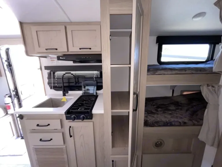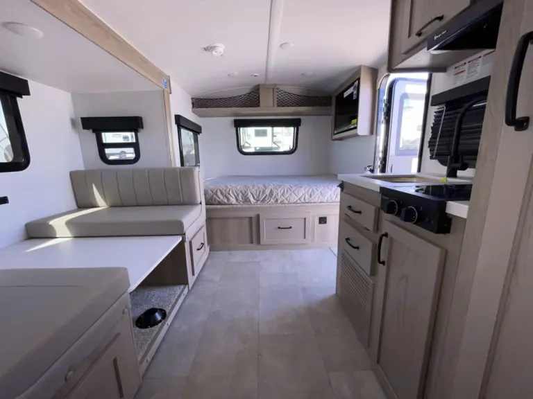 Experience family-style camping in this 2025 Geo Pro G20BH bunkhouse trailer. Towable under 4,000 lb by most mid‑size SUVs, it comfortably sleeps up to 6 with a full-size front bed and rear bunks. The slide-out dinette adds living room feel, and the efficient kitchen/dining layout makes meal prep a breeze.Features like solar power, power awning (14 ft), heated tanks, and voice‑controlled systems make setup simple and off-grid stays easy. Clean, modern, and practical — perfect for weekend getaways or extended road trips!