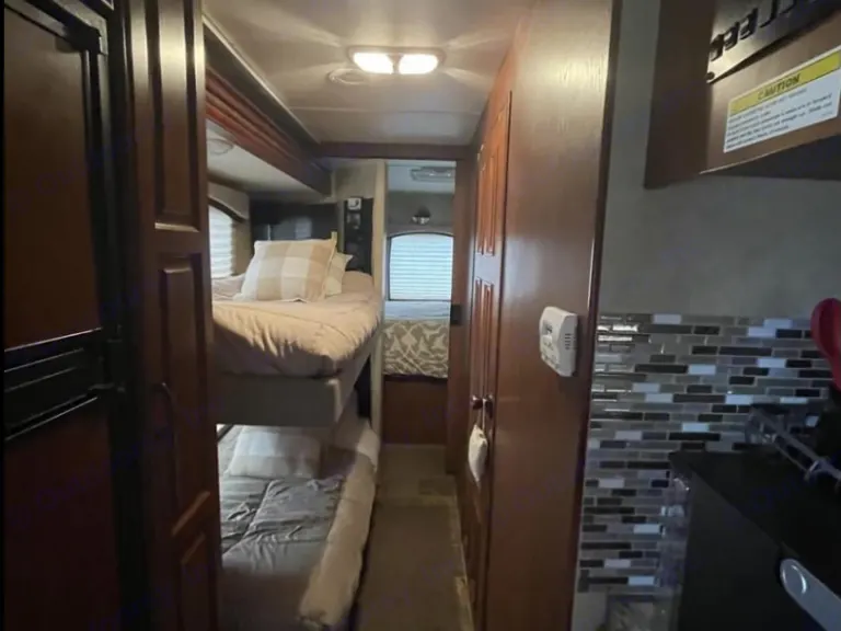 We can do special requests as well! Such as: certain movies, birthday/anniversary décor for added fee. The main living area and bedroom suite is equipped with a smart TV that allows streaming via your hotspot or mobile wifi. Each bunk has its own TV/DVD player. Please read the entire listing for minimum night stays, cleaning a dumping fee and any add ons you might want to include to better enjoy your stay. This motorhome is perfect for your road trip adventure.What's includedRV comes semi stocked with 4 towels. Toilet paper, cleaning solutions and trash bags. The queen bed in the master will be made up with clean sheets, blanket, comforter and 2 pillows. 2 sets of bedding with pillows will be provided for the fold out couch and bunk beds. 2 sleeping bags are also available upon request. All tanks, water, propane and gas will be filled for your dry camping convenience or if in a campground full hookup will be connected. Our rates include fill fees: propane, water, and gas. If conditions of motorhome upon return have dirty dishes, stains, mud, clogged toilet or anything broken additional cleaning / repair fees will be retained from your deposit. 4 camp chairs and outdoor table will be set up for your convenience.Also included with your stay are board games, flashlight, movies, first aid kit, coloring books and crayons.