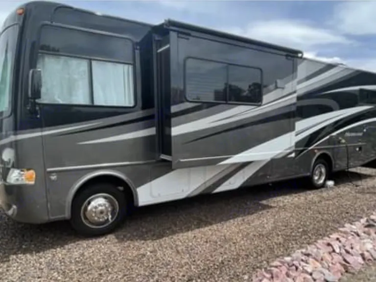 the factsThis class A is a 2012 bunkhouse that can sleep 8 people comfortably. Featuring a custom paint exterior design, fully equipped with everything you will need for a home away from home. Well cared for Motorhome and well-maintained interior with a lot of light. Plenty of seating and room for your family and friends with floor space for your four-legged friends. Kitchen is open with spacious countertops including an additional extension for even more serving area. Stove, oven, microwave, refrigerator and freezer. Pots, pans and cooking utensils are supplied.We can do special requests as well! Such as: certain movies, birthday/anniversary décor for added fee. The main living area and bedroom suite is equipped with a smart TV that allows streaming via your hotspot or mobile wifi. Each bunk has its own TV/DVD player. Please read the entire listing for minimum night stays, cleaning and dumping fee and any add ons you might want to include to better enjoy your stay. This motorhome is perfect for your road trip adventure.