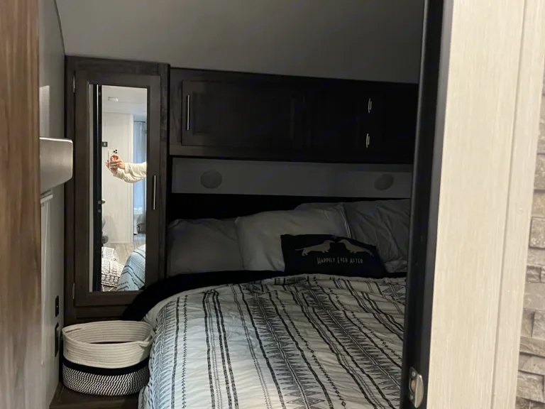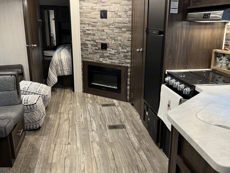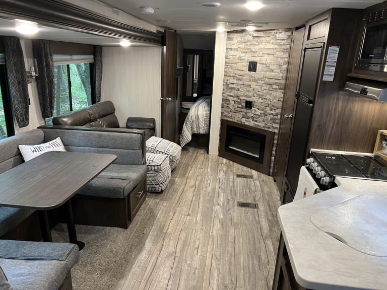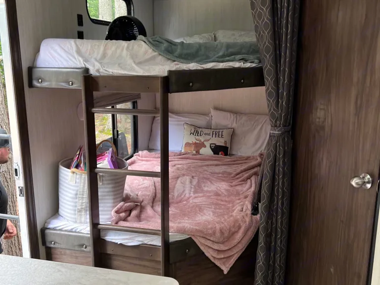 Great camper. Bunk beds for the kids and camper queen for the parents. This camper also has a separate door to the master bedroom for easy access. On the outside there is a small fridge. No cats please only dogs. Will only allow 2 dogs. This Camper IS Delivery Only!! Send me a message with any questions.