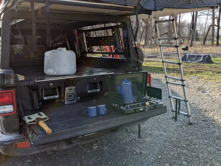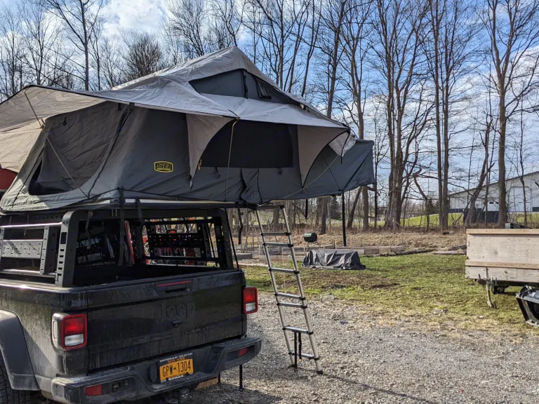 Feeling like going camping or exploring the Adirondacks but you don't want to sleep on the ground? We offer something more rustic than a camping trailer but more comfortable than a standard tent. You can explore the southeast and central ADK region or head to your favorite campground for a family night. You can even try overland camping in the Moose River Plains, less than a 2-hour drive from Syracuse.We have a spacious Smittybuilt Gen2 Overlander Tent XL , which easily fits two adults and two smaller children. The tent gets you off the ground, away from critters, and has a nice mattress for your comfort.This tent mounts to your roof rails/bed rack. We can mount the tent for you and show you how to set the tent up and take it down. The process usually takes less than 5 minutes.What's includedWe can include camping chairs, and cooking equipment (propane stove, pot, pan, spatula, coffee maker, plates, bowls, coffee cups, and camp utensils). We can also include a 5-gallon water container if you want to bring your own water.RecommendationsThere are plenty of state parks, roadside camping locations, and spaces on private land to explore in the area. We love the Adirondacks but there are plenty of places even close, like Stonypond and Morgan Hill to name a few. Moose River Plains has drive-up sites that are still wild, giving you a sense of wild camping with the comfort of a car.Other things to noteNo smoking in the tent.