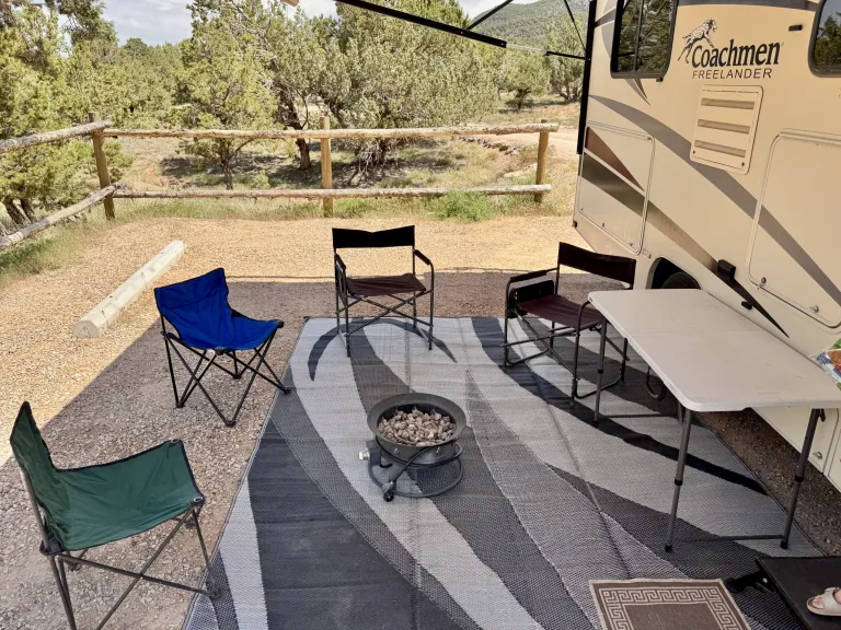 What's included• Fully Equipped Kitchen – Stove, oven, microwave, fridge/freezer, and counter space make meals on the road simple.Private Bathroom – Hot shower, toilet, and sink for convenience and comfort.Comfortable Climate – A/C and heat keep you cozy in any weather.Power Anywhere – 30-amp hookup and onboard generatorElectric Awning – Shade at the push of a buttonWater tanksOutdoor Setup – Includes 6 lawn chairs, propane fire pit, and roasting sticks—perfect for evenings under the starsRecommendationsAdventure at Your Doorstep