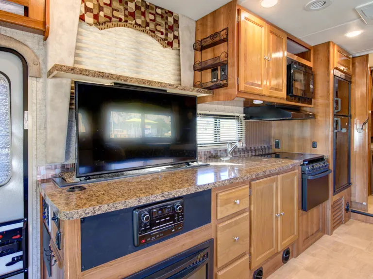 We can't wait for you to enjoy our Leprechaun RV. Sunny Times RV guarantees you will have a great time touring with this deluxe RV. This RV comes with two slide outs, 3 tv's (one for the outdoors), an outdoor kitchen to boot. This RV is perfect for enjoying the outdoors in comfort. With two recliners and the both the front seats the swivel you and family can enjoy movies and games inside or venture outside and cook with the already attached sink and table. The RV will be full with gas, propane and water upon pick up. It also includes linens, dishes and cookware . We can include up to 6 chairs and hotdog sticks upon request. We also have a place to park your vehicle if you choose to pick it up. We will try to work with your pick up and drop off times if possible. Our goal is to make your experience hassle free. Please feel free to reach out to us if you have any further questions.What's includedWe provide sheets, pillows and a blankets for all three beds (you will need to bring extra blankets if you sleep cold)