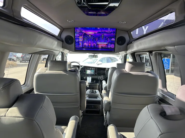 This 9 passenger GMC Savanna is perfect for a party, tailgate, camping or a road trip. With 6 captains chairs that swivel and a rear bench seat that folds flat. This van has many different options for seating arrangements. The TV with roku is a great way to pass the time while traveling down the road. Also, Hdmi ports for additional gaming systems. ie (Nintendo, Playstation, Xbox and more). Sorry, you must supply the gaming systems.Other things to notePlease no smoking in the vehicle.