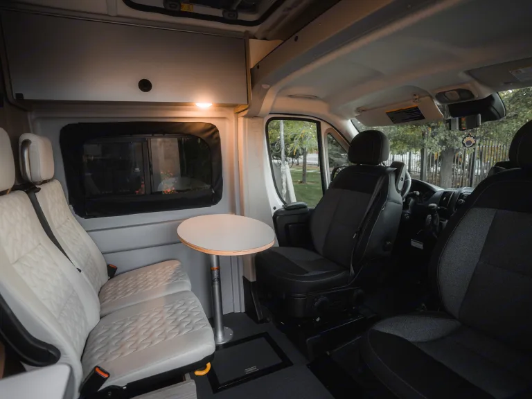 However, not to worry, you will still stay warm with fully functional ducted heating... You can still cook your meals on the 2-burner gas stove... You still bring all your food & keep it cold / frozen with the 12v fridge/freezer combo... And you still have full power access when plugged in or operating the generator.This RV is amazing for couples or small families. It's extremely user-friendly, with a "Get-In-&-Go" feel. Anyone can drive it and feel right at home behind the wheel, while having all the comforts OF home inside. You can feel confident taking it on the road & the highways, making U-turns and parking in regular parking spaces. Powered side mirrors and a full-color digital rearview mirror + backup camera makes driving even more secure. With an average of 15-20+ MPG, it's great on gas and saves you money when compared to a larger Class C or Class A. It can comfortably accommodate 4 adults and is truly ideal for a small family of 2 adults & 1 or 2 kids. It has 2 full beds: One is a Murphy bed in the rear of the van that folds out of the way and provides access to storage space or a flexible desk/office space when not needed. The other is the Pop-Top sleeper space, which kids absolutely love, and gives you the 'tent camping' feel while still being part of the RV itself. The pop-top is fully accessible from the interior of the van, via a foldable & storable ladder.