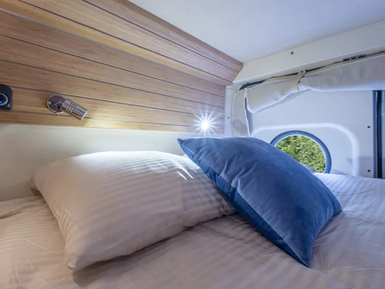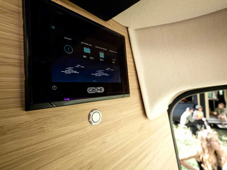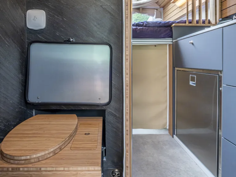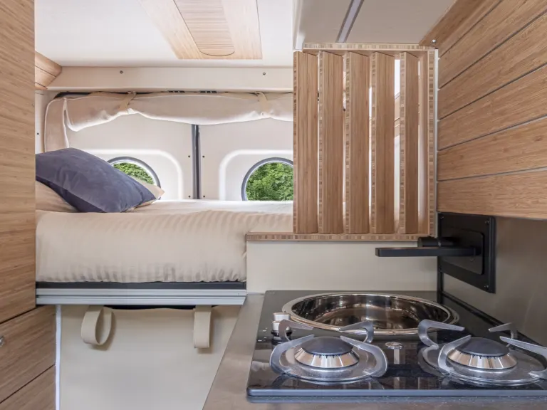 #Chamonix-Mont-BlancFabriqués sur-mesure, de la menuiserie à la couture, par des artisans de l’Isère, experts des tourbus et fourgons aménagés, le van ØBerwild offre un design minimaliste et modulable pour mieux se fondre dans la nature. A l’extérieur : carrosserie mat bleu electrique et allure compacte. A l’intérieur : mobilier aux matériaux naturels teinte sable et bois de bambou.Literie : Deux chambres : la première au rez-de-chaussée (équipée d’un matelas 200x140cm) ; la seconde à l’étage (équipée d’un matelas 200x140cm), sous le Sky-Up, toit surélevé.