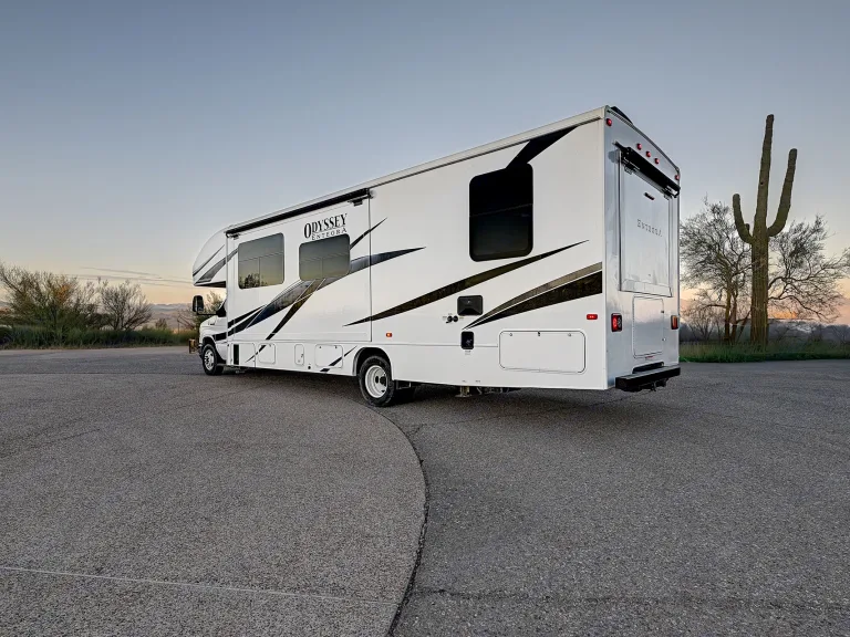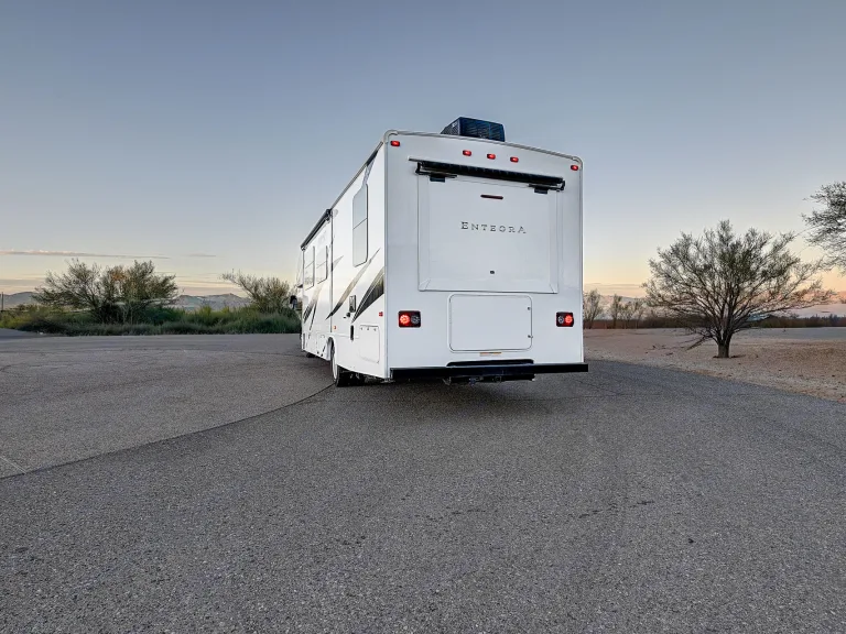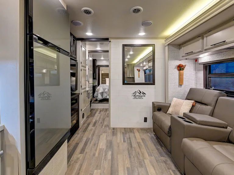Off-Grid Ready: Equipped with dual roof AC units, solar recharging, LP propane for hot water and heat, and a (quiet) gas-powered generator for up to 4 days of power.For an enhanced, safe, and comfortable driving experience:Patented E-Z Drive Elite – computer balanced driveshaft and Koni FSD shocks for a super comfortable, smooth driving experience!
