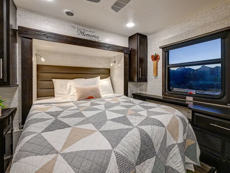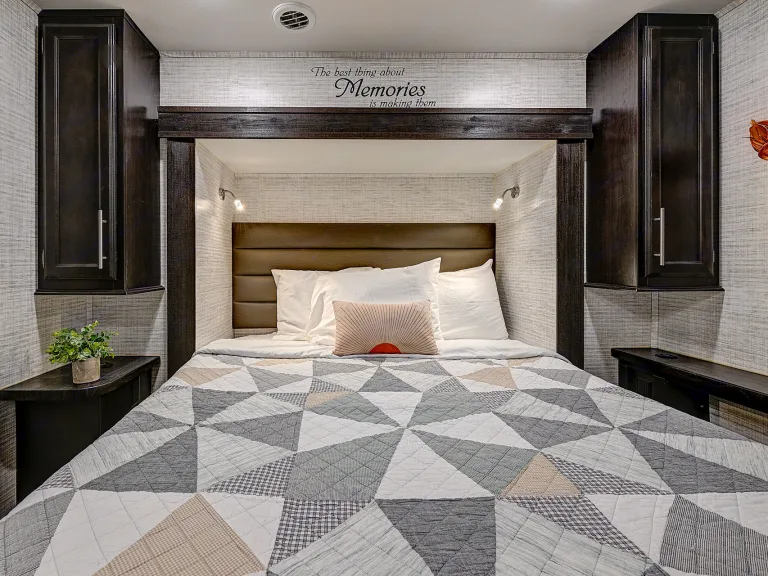 HighlightsPrivate Queen Bedroom: Enjoy restful nights in a full queen-size bed with premium linens.Ample Sleeping Space: Comfortably sleeps up to 8 with a queen bed, twin bed “bunkhouse,” overhead loft, and dinette that converts to a bed.Relaxation Ready: Features a sofa and a spacious dinette for dining and lounging.Fully-Equipped Luxury Kitchen: Comes stocked with dishes, glasses, cookware, small appliances (coffee maker, toaster, blender), and all essentials for preparing delicious meals.Outdoor Perks