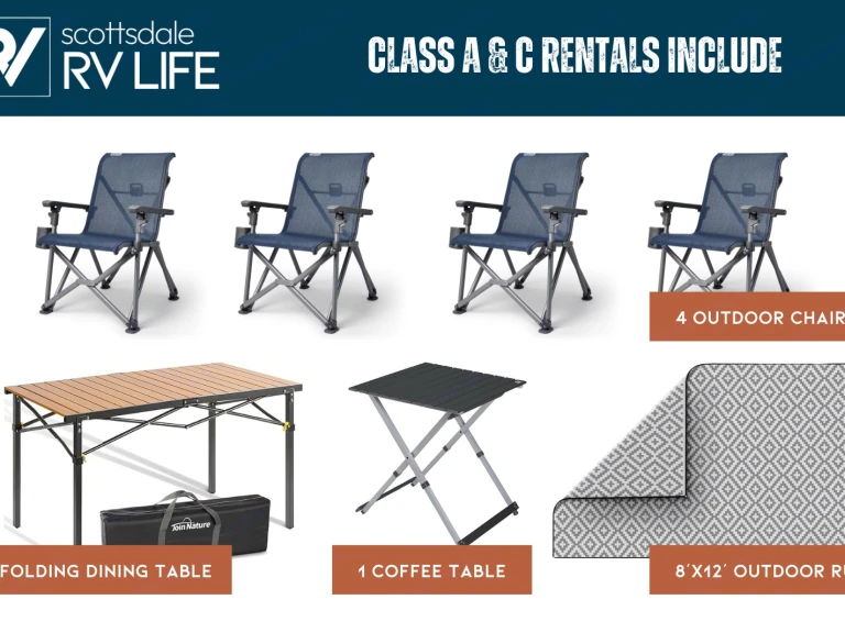 Lounge in Luxury: 4 high-end Yeti folding chairs for lounging.Dine Under the Stars: Outdoor dining table and coffee table for al fresco meals under the LED-lit awning.Unmatched Performance & Features