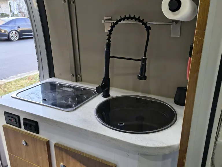 Enjoy comforts like hot water, full kitchen, AC/heat, and solar power for off-grid fun.