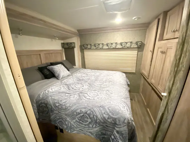 If you’re looking for the mountain experience this rig is the rig for you! By choosing this RV you’re choosing the ability to either enjoy some beautiful campgrounds, or full on boondock with our easy to use solar set up. This rig is equipped with a 330W Solar Panel, a 3,000W Inverter/Converter, and 2 house batteries. This set up can buy you 2 to 3 days off the grid without ever cranking the generator if you conserve energy. Low on battery? Crank the generator for 6 to 8 hours and you’ll fully charge those house batteries. Complete with 2 slide outs to maximize space, the ability to listen to your own tunes with our indoor/outdoor speaker system, and the necessary items to enjoy your vacation wherever you choose to park! Whether you’re looking to fully hook up in a beautiful camp ground, or park in the middle of nowhere to get away from the world, this RV allows you to do whatever you want.What's includedFresh linens for each bed (please make sure to let us know how many sleepers you’ll be using), kitchen essentials, a small charcoal grill, electric/propane water heater, and camping chairs are included.Delivery and pickup within 100mile radius upon requestOther things to note*The Gas will be full when you get it so we expect it to be full when we get it back or there will be a