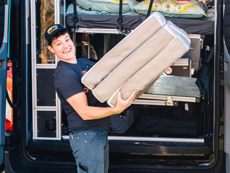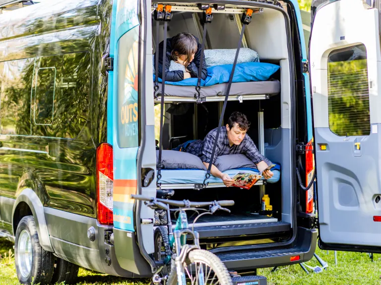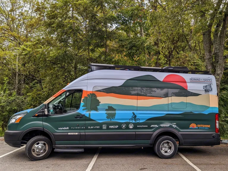 Outshine is a 2019 Ford Transit High Roof XLT custom built Vandoit Campervan. Featuring a professional modular conversion equipped with 2 full-size bed platforms, mattresses, solar panels, furnace, A/C, Dometic Fridge, kitchen pod with pressurized hot water and an outdoor shower. There's tons of storage space and a swivel passenger chair. This rig is packed with high end components like on demand hot water, a 32" TV (can work with your mobile hotspot), interior accent lighting and exterior LED lighting over passenger and rear doors plus a Thule Awning to keep shelter in the rain. Outshine can sleep and seat 4 comfortably. You can add on gear rentals like bikes, inflatable paddle boards, crash pads and more for you to explore further in the outdoors while traveling. Don't feel qualified to go it alone? We offer guided tours and can recommend the best places to camp, hike, paddle and play in the Southeast. Contact us to learn more about our custom itineraries and one of a kind adventure packages while visiting the best outdoor town - Chattanooga, TN!What's includedFresh linens, camp chairs, fridge, awning, camp stove and cookware/dish set/utensils for 4 people. Airport pickup from Chattanooga Regional Airport upon request at additional charge. Other add-ons like outdoor gear including paddle boards, bikes and crash pads are available for an additional charge. RecommendationsHarrison Bay State Park, Chester Frost County Park, Cloudland Canyon State Park, Gee Creek and Foster Falls are our favorite places to camp near Chattanooga! Harrison Bay and Chester Frost are on Chickamauga Lake offering serenity and leisure paddling opportunities. Cloudland Canyon has waterfall hikes and mountain bike trails. Gee Creek is on the banks of the Hiwassee River which is a scenic Class II river with tubing, rafting and kayaking. On your way out to Foster Falls in South Cumberland State Park, be sure to stop by Big Soddy Creek Gulf to take a dip in the natural blue hole. Foster Falls offers a few primitive camping sites with access to trails, a waterfall and rock climbing. Nearby is the Caverns, the best place under earth to see a concert! We have connections with local partners to offer private camping options and experiences off the beaten path. Other things to noteTV works through mobile hotspot on your phone, not available with purchase.No smoking. No Festivals. No Tailgating.