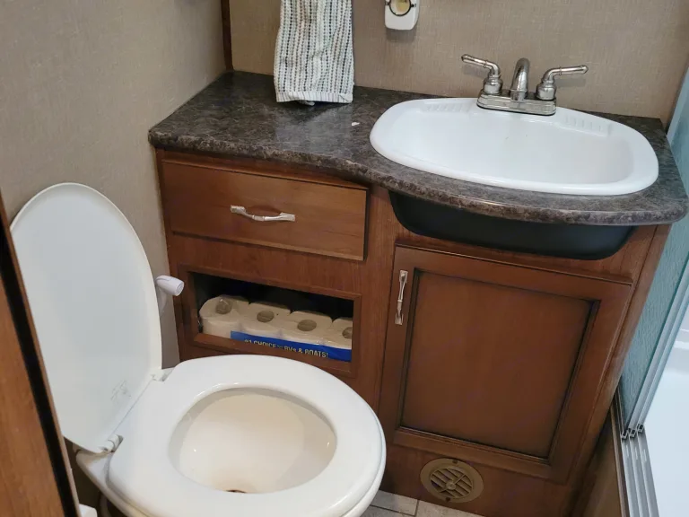 We especially love the easy camp setup. It takes less than 15 minutes to get relaxation underway with the help of a built in auto leveling system, just push a button and voila! We also have adapters for multiple electrical hookups as well as sewage. If you're off the grid, you can enjoy the use of a 5500 Onan generator to power all appliances and it shares the same fuel tank as the engine for convenience.