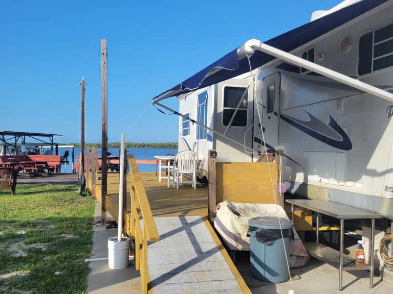 Enjoy the evening on your private deck overlooking the water and our spectacular sunsets. Best fishing access to Everglades National Park. A boat slip with water and electric is included. RV has a standard house refrigerator, toilet, washer & dryer, BBQ grill and an ice machine. Free use of a boat ramp one block away