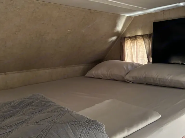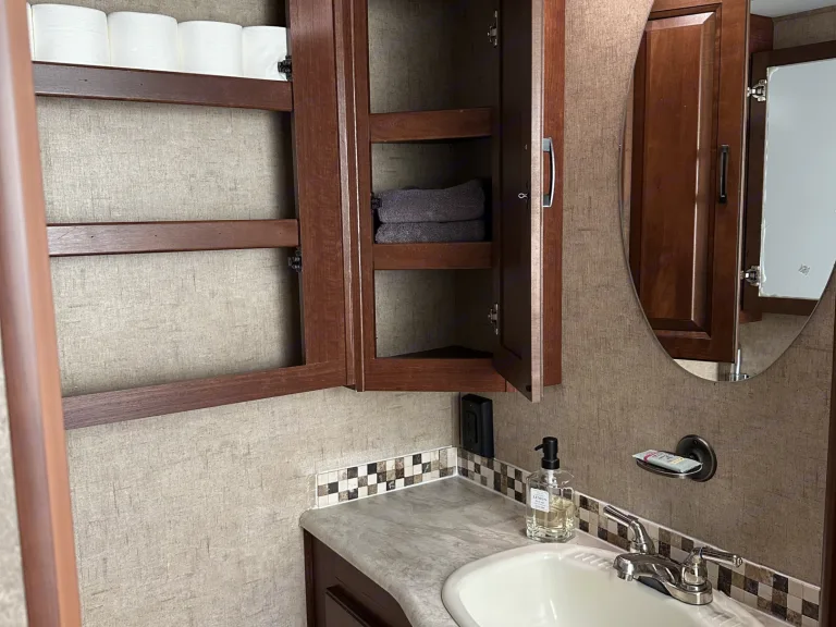The RV was comfortable, but the photos in the listing don’t really show the wear on the cushions at the table and on the couch. The faux leather is crumbling and is in bad condition. You cannot sit on it without pieces getting on our clothing and on the floor. The only other thing I would recommend the owner address is the lack of items in the kitchen. There was not a pan, pot or cookie sheet that was oven safe and no hot mitts or kitchen towels to take anything out of the oven. Other than that, the RV is spacious when the bump outs are out. The mattress in the back of the RV was comfortable.