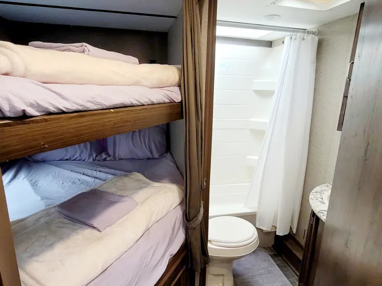 At Rent R RV, our mission is to put your mind at ease when booking with us, regardless of which RV you rent. We offer complimentary amenities such as memory foam bed toppers, clean linens, bath towels, utensils, cookware, and camp chairs with our units. We make glamping easy at your desired location and offer convenient delivery options too!