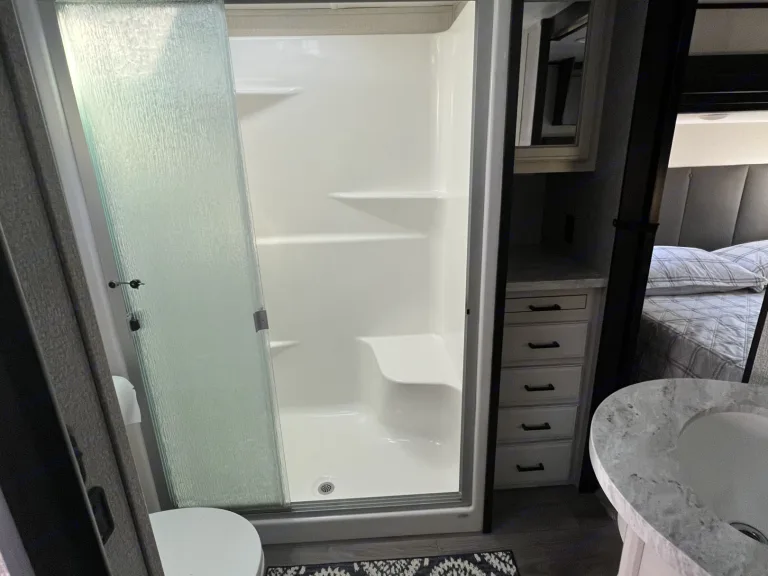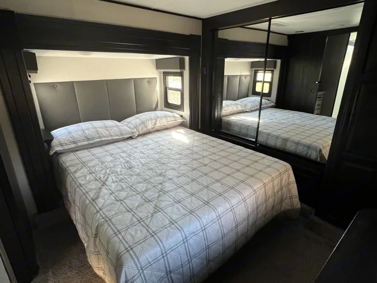 Spacious and comfortable fifth wheel! 2 bedrooms, 1 full bathroom, 1 half bathroom. Relax on the comfortable u-shaped couch with a pull out bed or in the recliner while you sit back and watch TV in the living room. Enjoy the kitchen with an island and full sized refrigerator/freezer combo, propane stove and microwave. Powerhouse on Wheels is ready for your next adventure! Plenty of space to sleep, and TVs for entertainment when you need a break from the outdoors. Check it out today!What's includedFresh sheets, pillows, pillow cases for queen size bed and 4 twin size beds