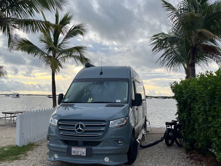 Pearli is a 2021 Midwest Automotive Designs MD2, built on a Mercedes Sprinter Passage 3500 Dually (170” wheelbase). She is as luxurious as you can get, with all the amenities to keep you traveling and living in comfort, no matter the weather, how far off the grid, or how beautiful a view you wake up to.The rear bench seats automatically lowers into a king size bed, which can easily sleep 2. Everything on the van works great except the awning. There is a large refrigerator and freezer, full bathroom with a shower, stove, and sinks (bathroom and kitchen). There’s plenty of storage, as well as a closet where you can hang clothes - unheard of for a van!We are dog lovers, so we do allow pets with a deposit and cleaning fee.What's includedSheets/comforter/pillows, bath towels, beach towels, camping I chairs, hammock, all the cooking stuff you could need (message us with any specific questions or requests).• after booking, you’ll be sent a link to a video walk through as well as a written manualOther things to noteBefore returning, please: