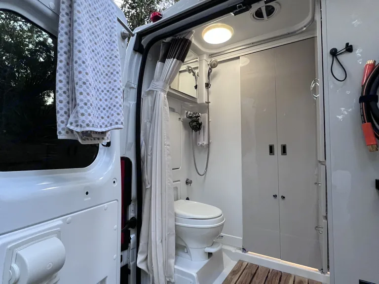 Imagine going from the campsite to the beach, showering and then going to the restaurant. It fits everywhere! This van is designed for effortless driving and parking. Whether navigating through narrow city streets or winding mountain roads, its compact size and advanced handling ensure a smooth and stress-free journey. Say goodbye to the challenges of driving a large RV and hello to the freedom of exploring.It’s crazy versatile! Comfortably travel and live on the road, with features like a fully equipped kitchen, bathroom, and sleeping area.