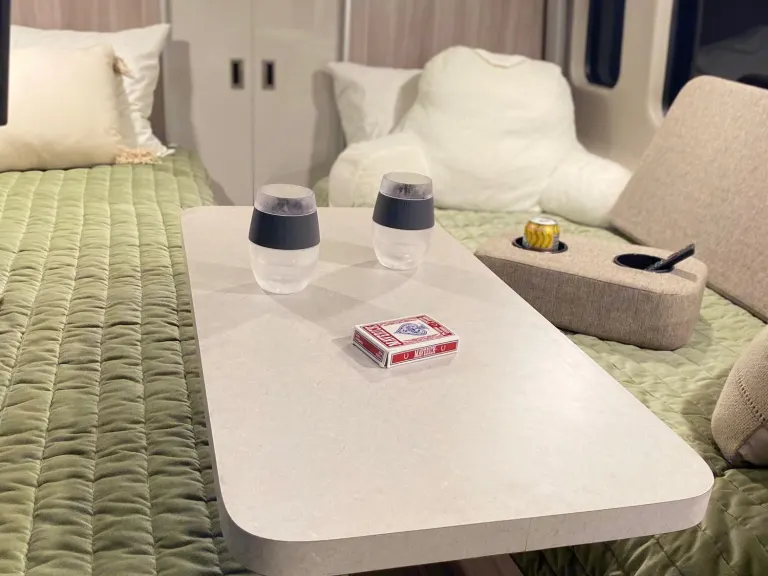 Relax and watch a movie on the tv or go play outdoors! Stay connected with wi-fi, Apple CarPlay, numerous usb & power ports within reach. The super comfy, revolving leather captain chairs with the hidden desk make a great remote workspace as you open the slider screen door to let in the cross breeze. Let the creativity flow as you relax - perfectly nested. Bring your own outdoor stuff or add on our outdoor package including: outdoor chairs, a table, and a 6x9 rug,On or off grid- Equipped with solar panels, a quiet lithium battery, 20-gal propane tank, 27 gal fresh water, 13 gal black & grey tank you can stay disconnected for a bit, but how much you use the power determines this. We can help you make the most of your trip to meet your expectations.We offer pickup and delivery options to meet your needs. Because it takes us 4 trips, it is not cheap but it can be more convenient for you. Although we do allow tailgating & fairs, it must be approved before booking. No burning man but the local craft fair is probably ok. We will have to discuss tailgating and set clear rules.We tried to keep the cost as low as possible and have packages to accommodate the Bring-Your-Own renter to the Get-It-All-Ready renter. Feel free to ask us questions. You're in control of your destination, as well as the cost! We have been renters for years before deciding to buy so we have been there!!?Ready to Start Your Adventure?