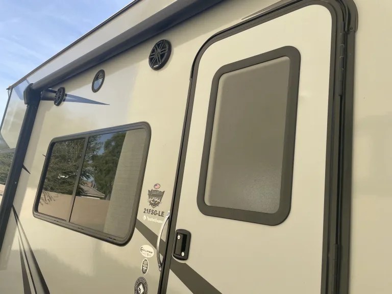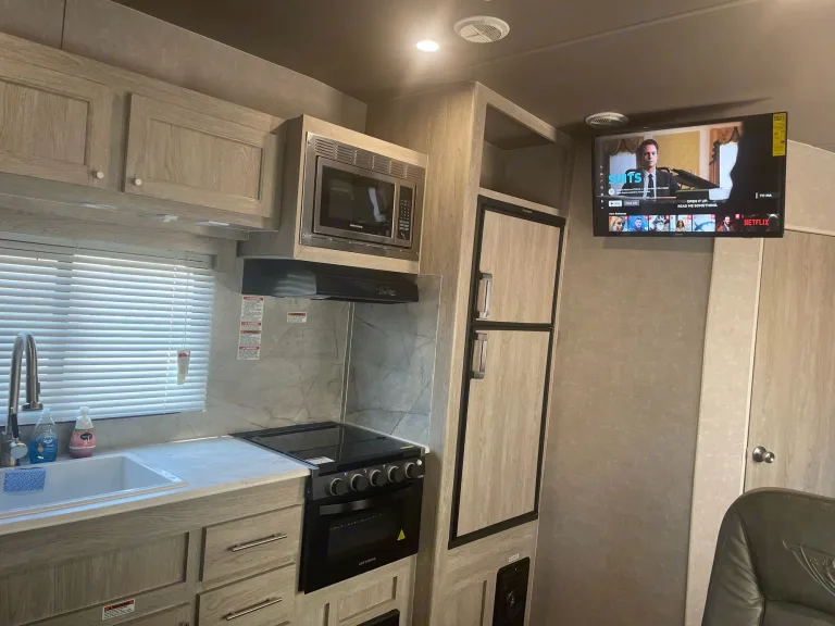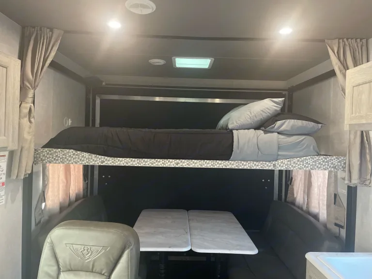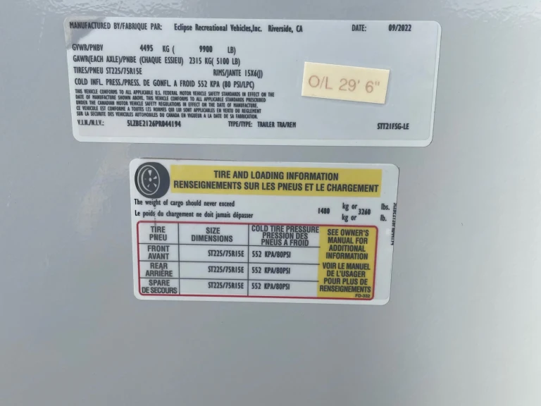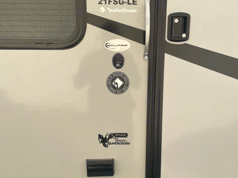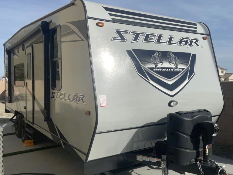 Hi. This is my 2023 Eclipse Stellar 21FSG-LE. Is it a toy hauler that will easily fit a 4 door RZR but can fit a four door can am as well. Can sleep up to 6 adults. Has a queen mattress, a bunk bed, and 2 fielding seats that can be set for sleeping area. Also has its 3 burner stove, refrigerator and freezer, and a sink. Has a inside shower and toilet. Dry weight is roughly 6200lbs and max is 9900lbs. Also has ac and heater unit. What's includedHi. I provide a set of pans, a pot, silverware, and cutting board.