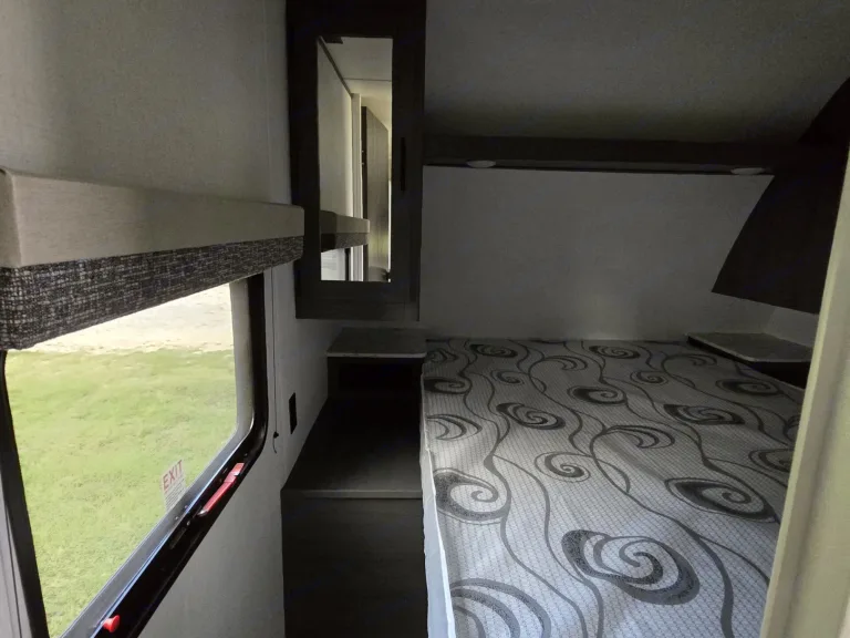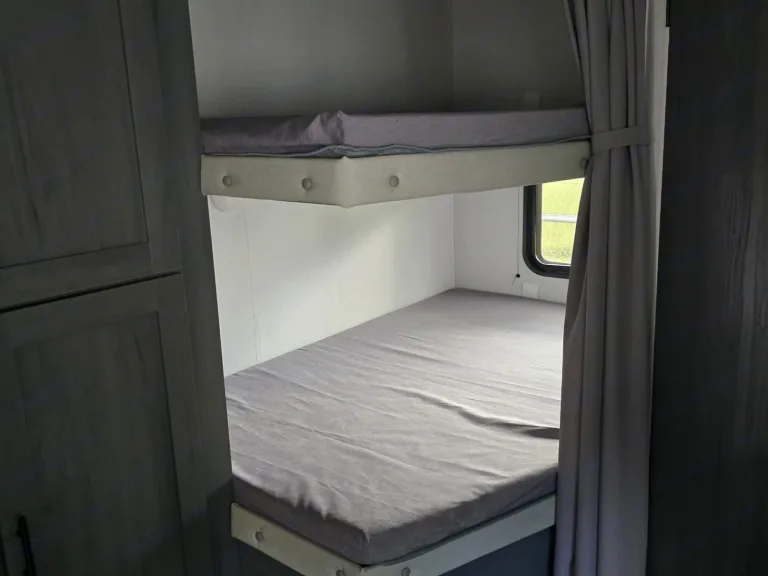 Sleeps 6 comfortably: Queen bed, convertible dinette, and a cozy sofa sleeper. Two bunks (top bunk is 150 pound max weight)