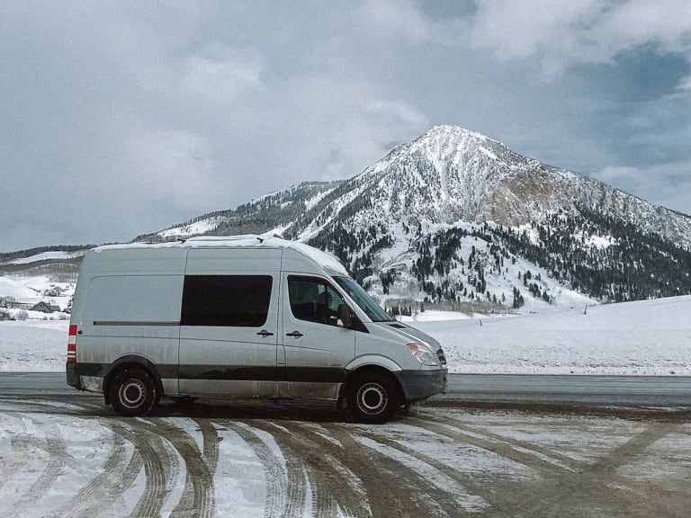 Truly the every season van, Spinelli the Sprinter is ideal for couples, individuals and families seeking unforgettable adventures. Whether you’re chasing snowy mountain slopes, exploring national parks, taking a cross-country road trip or just want a weekend away in the woods with a comfy mattress, Spinelli is the ideal off-grid camper van, equipped for all seasons.Spinelli is kept warm in the cool evenings and winter nights with a diesel heater, which is also perfect to dry your ski and snow gear as it hangs on the hooks. In the summer she stays cool with a ceiling vent fan and quality insulation.What Sets Spinelli Apart:-Off-Grid Ready: Enjoy total freedom with solar power and a hand-pump sink.-PRE-Approved dogs ride for free. :) Message us to get your dog pre-approved :)-Winter Adventure-Ready: Insulated for cold-weather camping and equipped with hooks for drying snow gear. Spinelli also has a diesel heater, perfect for drying ski gear or warming up after snowy adventures.-Spacious & Functional: Sleeps 4 (king-sized bed + full size bed, both super comfortable memory foam), seats 5 (perfect for car seats), and features ample storage for bikes, skis, and gear.-Family-Friendly: An extra row of seats ensures space for everyone, from little ones to adventurous friends. A pack-and-play fits perfectly in the main space as well for our little campers.-Fully Equipped Kitchen: Fridge, freezer, sink, cook wear and plenty of cabinet space.-The Coffee Lover's Dream–Spinelli comes with a custom coffee experience, quality beans from a local brewing company and Chemex pour over set up with an electric kettle. Enjoy a quality cup every morning.-Polaroid Camera–Create a unique & special souvenir to remember your trip with our vintage polaroid camera.-At-Home-Comfort–A rug, for barefooted comfort. A serving tray to hold breakfast in bed, and a few other things really help create an organized, smooth & homey experience in Spinelli.Follow along or check out Spinelli’ adventures so far on Instagram, @spinelli_sprinterWhat's includedA fitted sheet is provided for the king bed, with optional rentals for a top sheet, comforter, pillows, & shams.Kitchen is fully equipped with a set of four plates, bowls, silverware, glasses, mugs, and an electric kettle. Enjoy your coffee experience with a pour-over maker & fresh ground coffee.A rug for barefoot comfort & a serving tray for breakfast in bed.Built-in, inside bike rack for 3 bikes.Polaroid Camera to take home a unique souvenir of your adventure.Camp ChairsRecommendationsTaking her through the mountains of Rocky Mountain National Park was wonderful!She has also been up to the Grand Teton National Park, a quick trip to Evergreen, Grand Lake, and many others!Simple trips up to Salida, Buena Vista and Breckenridge are also delightful for quick weekend getaways. Other things to noteDog friendly upon request. Dogs must be pre-verified. Any pets snuck into Spinelli will incur a hefty fine.No tailgating, festivals.Absolutely no smoking/vaping or drug use inside or near the van.Spinelli is to be driven only on paved or well-maintained county roads only. Off-roading is strictly prohibited.Return Spinelli with a full gas tank to avoid extra charges.No climbing on the roof.Photo tickets & tolls are the guest's responsibility, plus a hassle fee. Please drive safely!