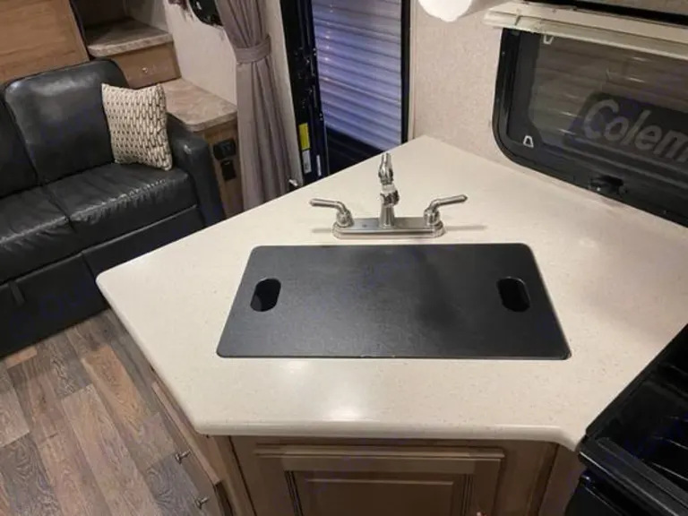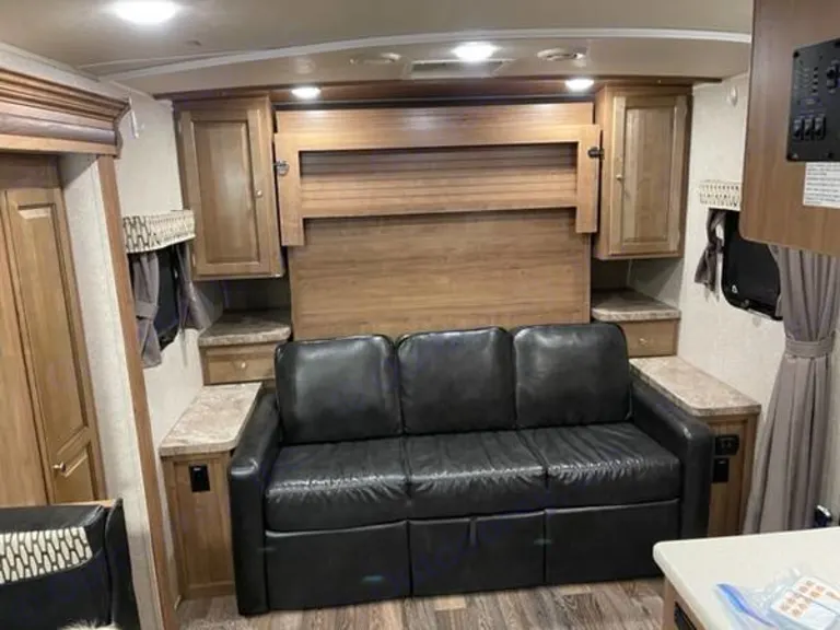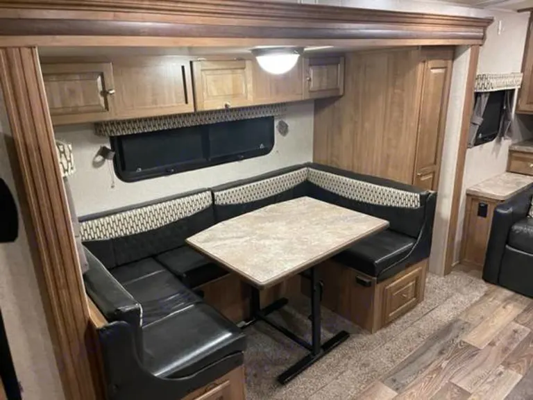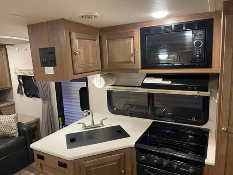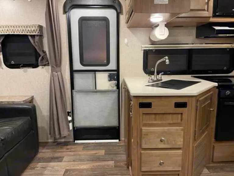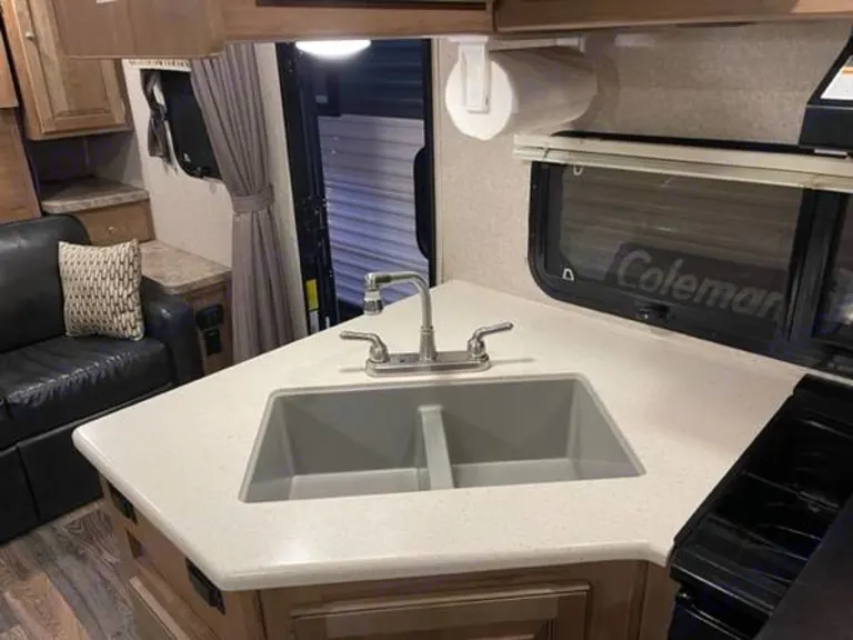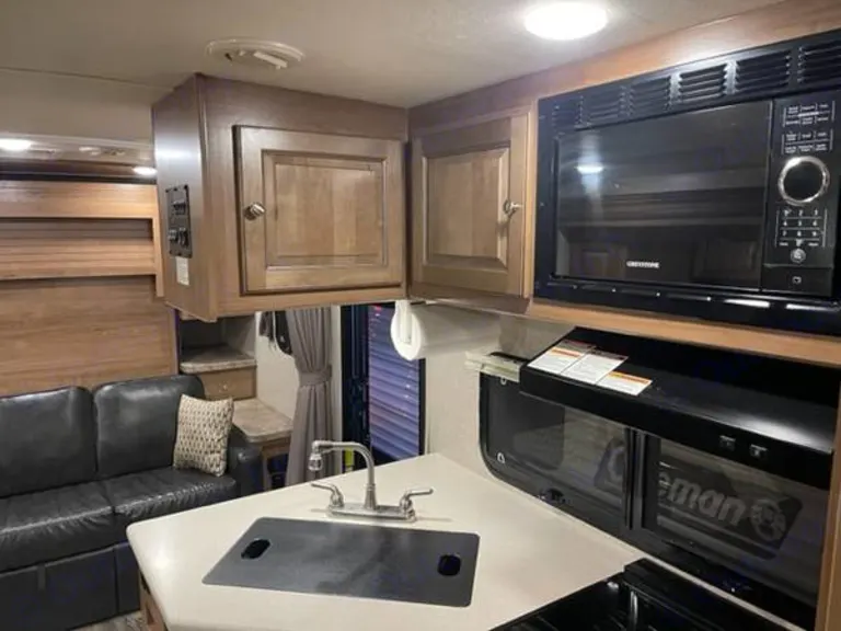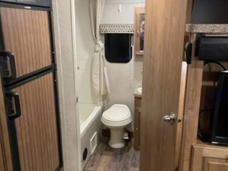 Our RV has been our weekend home for years. Our son learned to walk and our daughter learned to ride a bike on these monumental weekends we’ve enjoyed in this trailer. It has 1 big electric slide for the dinette, a tv and dvd, bunks for the kids and a full kitchen. A/C works great, electric awning outside. Bluetooth/dvd/fm stereo with outside speakers. Also a Murphy bed that folds up in the wall to make more room. Plenty of cabinet space and a bathtub for the kids.