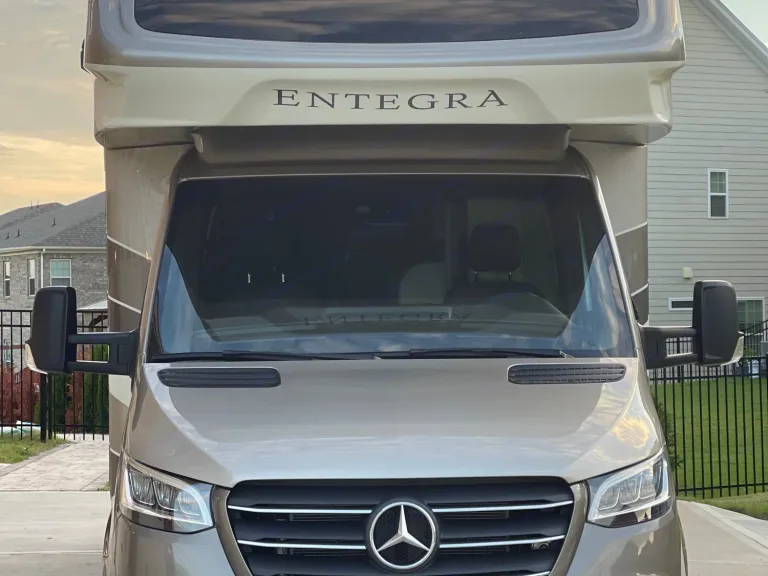 Our 2022 Entegra Coach Qwest 24L offers premium luxury on the Mercedes-Benz 3500 chassis. Upgraded premium chassis features include Firefly Multiplex System, Active Brake Assist, Adaptive Cruise Control and Heated Captain’s Seats, to name just a few. The 10.25 inch integrated Mercedes-Benz Infotainment center with GPS means you can be sure you’re on the right road.This unit is easy to drive and maneuver. It has a 24.5 gallon fuel tank and an on-board generator which makes it perfect for boon-docking.The coach has comfortable sleeping areas and a spacious bathroom. The master is in the rear of the coach with queen bed, closet and a TV. There is also an over-the-cab queen bed and a large u-dinette that can be converted to a bed. The living room has a LED HD TV with Cable TV hookup and Blu-Ray player.The bathroom has a foot flush porcelain toilet and stainless steel sink. It has a large shower and a medicine cabinet.The fully equipped kitchen has 6 cu.ft fridge, gas cooktop with undermount stainless steel convection microwave. The full driver side slide-out offers plenty of room to cook and entertain your family!Outside of the camper has a large awning with LEDs. We also offer 17" Blackstone griddle, 4 chairs and a patio mat for outdoor cook-out and entertainment.The beautiful coach has a mix of neutrals and earth tones which creates a nice soothing atmosphere to provide the best camping experience for your family!We are here to make your trip comfortable and stress-free. Please don’t hesitate to reach out if you have any questions.Need a bigger luxury family coach? Check out my other listing with 5-star reviews-https://www.outdoorsy.com/rv-rental/concord_nc/2021_entegra-coach_esteem-31f_237759-listing**For the safety of you and your fellow passengers the RV is fitted with a GPS device.**What's included- Pickup / Drop-off Time: 12 pm EST