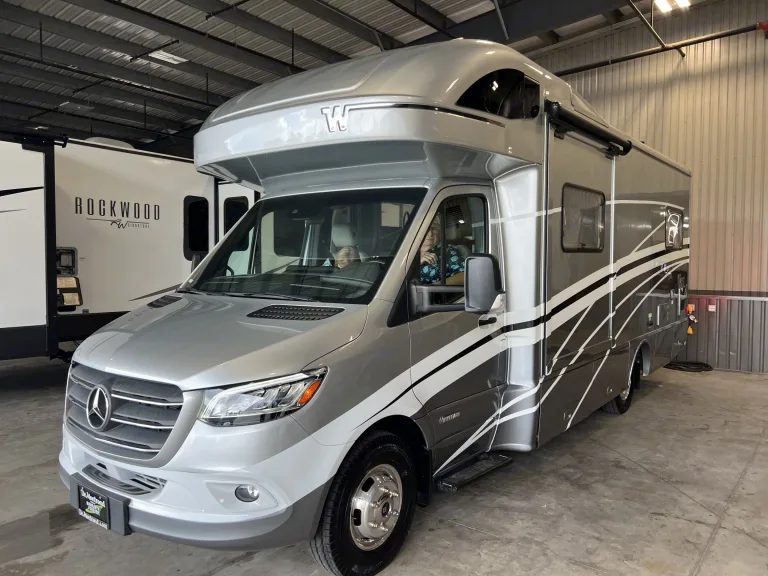 2021 Winnebago 24 View with Mercedes Chassis & V6 Diesel Turbo Engine with 5750 miles. Full Body Paint #2 Bay Mist 2; Includes View Graphics; Entertainment System (2 TV's, DVD Player & Bose Soundbar); Columbian Walnut/White Wood with Harmony/Taupe Interior; Auto Hydraulic Leveling Jacks; 3200W Onan Diesel Generator; Solar Recharge Panels; Auto Extending & Retracting Awning with LED lights; Full Refrigerator & Freezer; Gas & Electric Stove; Microwave with Convection and much more. Pristine condition.Additional Features: