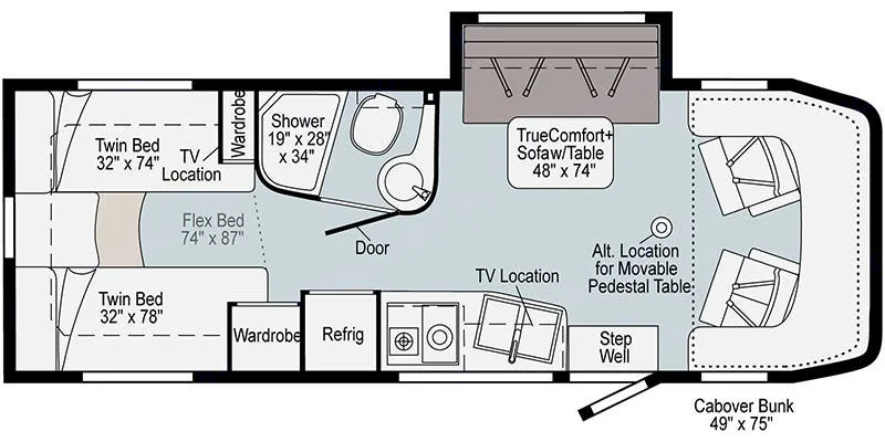 • Fresh water: 31 gal