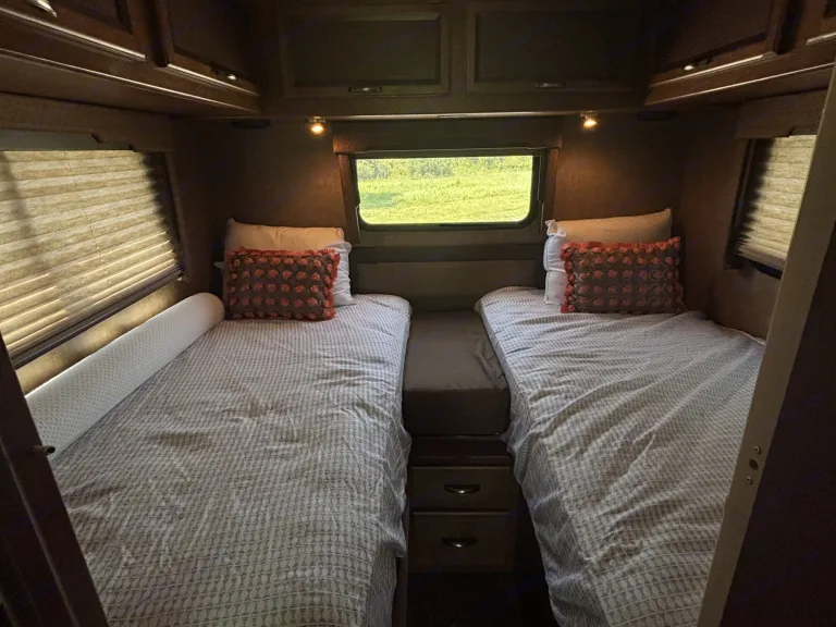 Enjoy a hassle-free getaway in our fully stocked RV! This 4-person RV comes with 3 twin beds and is equipped with everything you need.