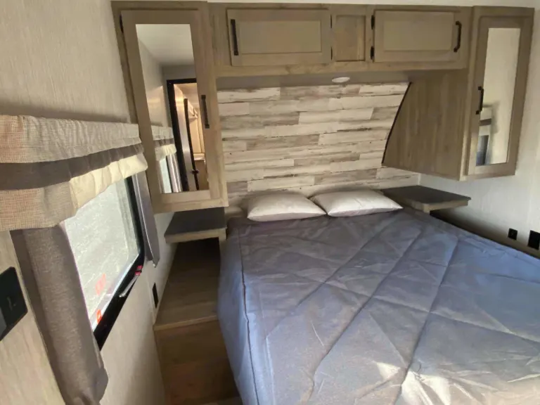 This is a 2021 bumper pull Puma Travel Trailer. It is easy to pull with the provided hitch, a 3/4 truck is recommended. All the comforts of home including AC, Heat, TV in the common area, master sleeping area with a queen bed and a separate room with bunks for the kiddos including their own private area where they can set up their gaming consoles ( console not included). this trailer has Solar power, outdoor shower and an outdoor kitchen complete with a cast iron griddle. Setting up is a cinch with power jacks and power awning. If you prefer, we will deliver the trailer to where you need it ( additional fees will apply for delivery and will not be reflected in your initial quote. please see additional info or contact me for details.)What's includedOur trailer is sanitized after each use and linens are changed out. Common daily living items such as Cookware, towels, and dishes are provided. We have many of the extras you may want for camping upon request ( I. e. camp chairs, outdoor games, shade canopy, board games, etc. some fees may apply).Other things to noteNo pets. Must be 25 or older to rent and no smoking in the RV.