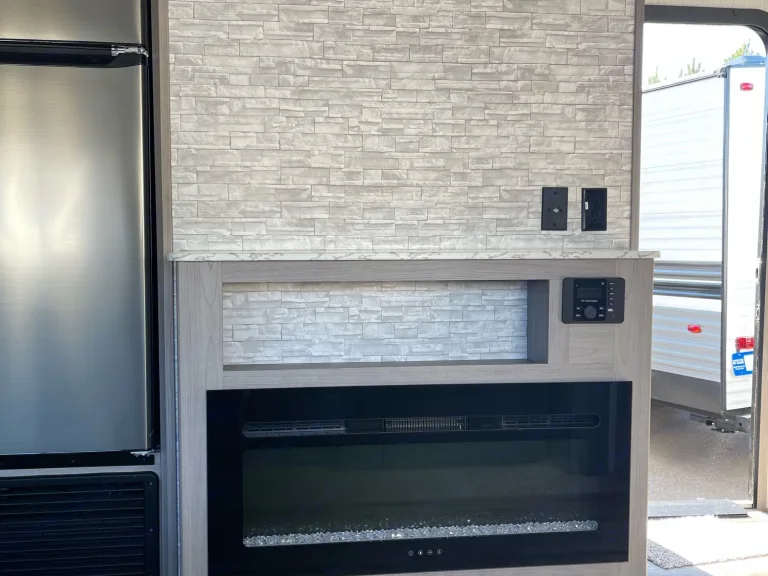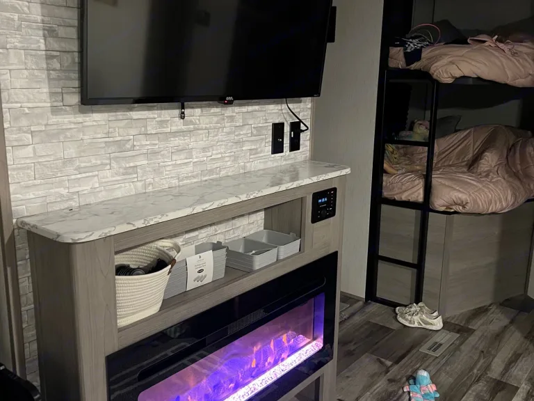 Electric fire place keeps it nice and warm without draining the gas tanks.