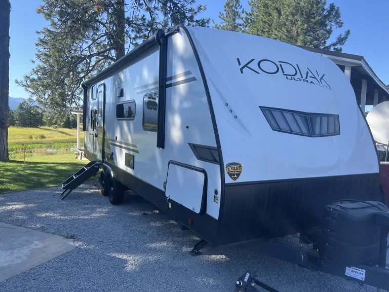 This is the perfect fit if your trying to enjoy the outdoors but still have the comfortable pad to retreat to. This Kodiak travel trailer it’s not big or to small. The 2022 Kodiak top of the line, when looking for storage space, comfortable, durability. Easy to use and everything is ran from push of a button. This trailer can be set up in matter of mins. So you and your family can hit the door ranning to the great outdoors. What's includedThis will come cooking utensils, chairs