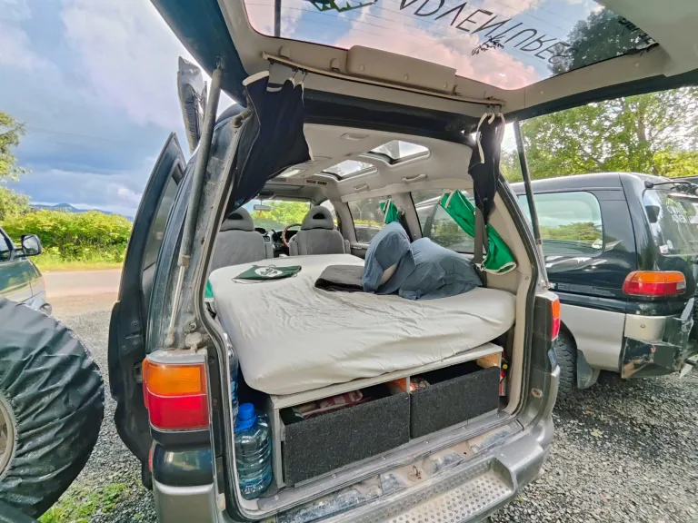 Meet Daisy – Your Island-Ready Adventure Van! Right Hand Drive- Diesel Power!Fully equipped for your journey — just bring your sleeping bags!Key Features- Seats up to 4 passengers- Sleeps 2 inside the van- Flexible interior for gear, luggage, or camping supplies- 4x4 – ideal for Haida Gwaii’s paved and dirt roads