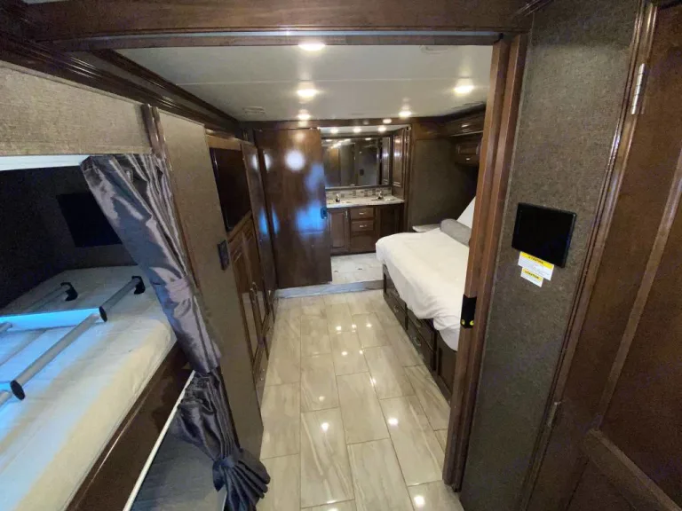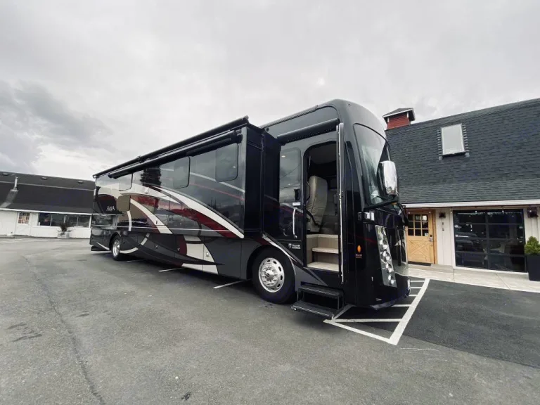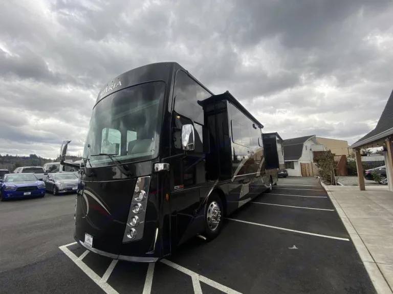Imagine your whole family laughing and having fun all while exploring the world. You can sit and drive in a leatherette reclining/swivel power adjustable captain's chair while enjoying the kids talking, and smile over at your passenger with an electric footrest on their chair. This Aria coach 4000 offers four seatbelts behind the cockpit on comfortable furniture that also provides extra sleeping space along with the overhead bunk. You can store your perishables in the stainless steel residential refrigerator and cook in the convection microwave oven . The owners will enjoy their own rear full bathroom with dual sinks . The kiddos and guests can use the full bath across from the bunk beds . Stop daydreaming about traveling with your family, and head out today! With any Aria motorhome by Thor Motor Coach you will be impressed with the 100W solar charging system. The system helps maintain the coach batteries while the Bluetooth App allows for quick control of the charger right from your cell phone or tablet. There is a Cummins Onan RV QD 8000 diesel generator as well. You will find a lateral arm awning which allows you more room underneath without having to duck under the arms to get to the entry. Inside you will be able to relax and sleep on the Denver Mattress king size bed with Tilt-A-View Inclining bed mechanism while reading a book or watching the 32" LED TV. You can even charge your electronics with the USB ports in the nightstands.