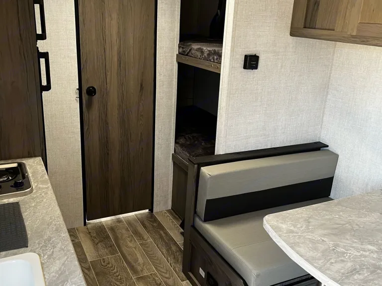 For your next camping trip, check out my 2021 gulf stream Kingsport Ultra-lite. At 21 feet long and just over 3k lbs dry, this is an easy rig to tow that can still sleep up to 4 (Queen bed, fold down table, and upper bunkhouse). For the pet lovers, the lower level bunk has been converted to a dog kennel to give your loved ones a comfortable place to sleep as well! If you have pets, feel free to use. If not, you can use this as storage as well.It includes all modern amenities, including a refrigerator/freezer combo, sink, stove, A/C, heater, toilet, shower, propane tank, and plenty of storage space. I also had an electric front jack installed to make connecting easier.We purchased this trailer in fall 2021 and we have been the sole owner. Everything is in perfect working order.My wife and I recently welcomed our first child, so we will be taking a slight break from the road trips this season. Up until now, we’ve enjoyed getting on the roads 3-4 times a year to travel to various locations. The RV has been more then enough for our family.If this looks like it fits your needs, book now!What's includedIncludes: