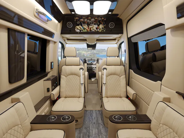 **NEW** Luxury 2023 Ultimate RV Mercedes Benz is the only luxury Sprinter on the market with a rear bathroom, comfortably seating up to 10 people and offering the functionality needed for long road trips, tailgates, camping, and more. This is the perfect RV, ultimate family van, and go-to entertainment vehicle. No more rest stops for the kids!Our Mercedes Sprinter RV has a best-in-class bathroom unmatched by competitors. Equipped with free Wi-Fi, Amazon Firestick, multiple USB inputs, 32″ 4k UHD Smart TV, and smaller second TV with wireless headphones. Sync both TV's to watch as a family or let kids watch/stream smaller TV with wireless headphones, while the big game is on for the Adults!The Ultimate RV is an entertainment machine ready for your next adventure. Other things to noteWill consider one rentals, please check with owner.