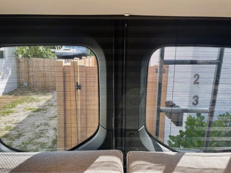Rear Double Doors with black out and mesh netting.