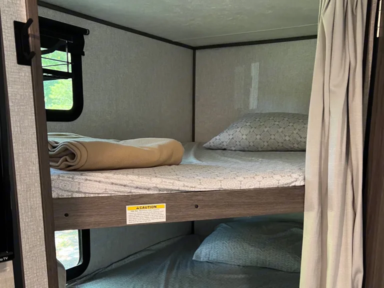 **Step Into Comfort with Our Spacious 32-Foot Camper**Experience the perfect blend of comfort and adventure with our 32-foot camper, designed to make your camping trip truly unforgettable. With enough space to comfortably sleep 8 people, it’s the ideal choice for families or groups of friends seeking a cozy retreat in the great outdoors.**Why Choose Our Camper?**- **Restful Sleep Guaranteed:** After a day of outdoor exploration, unwind on the upgraded memory foam queen bed, ensuring a rejuvenating night’s sleep. The full-size bunk beds offer a cozy nook for everyone to have their own private space. For additional sleeping arrangements, the fold-out couch and convertible dinette easily transform into beds, making sure everyone sleeps comfortably.- **Fully Equipped Kitchen:** Enjoy home-cooked meals with all the essentials provided, including plates, cups, pots, pans, and even a coffee pot for your morning brew. Whether you’re preparing a simple breakfast or a hearty dinner, our camper’s kitchen has everything you need.- **Entertainment & Cozy Comforts:** Whether you’re winding down after a day of adventure or enjoying a lazy day indoors, two smart TVs offer plenty of entertainment options. Plus, we’ve included blankets and pillows to keep you snug during those cooler nights.**Perfect Location for Your Next Getaway**Our camper is ideally located in Deland, putting you close to some of Florida’s most beautiful family-friendly getaways:- **DeLeon Springs State Park**