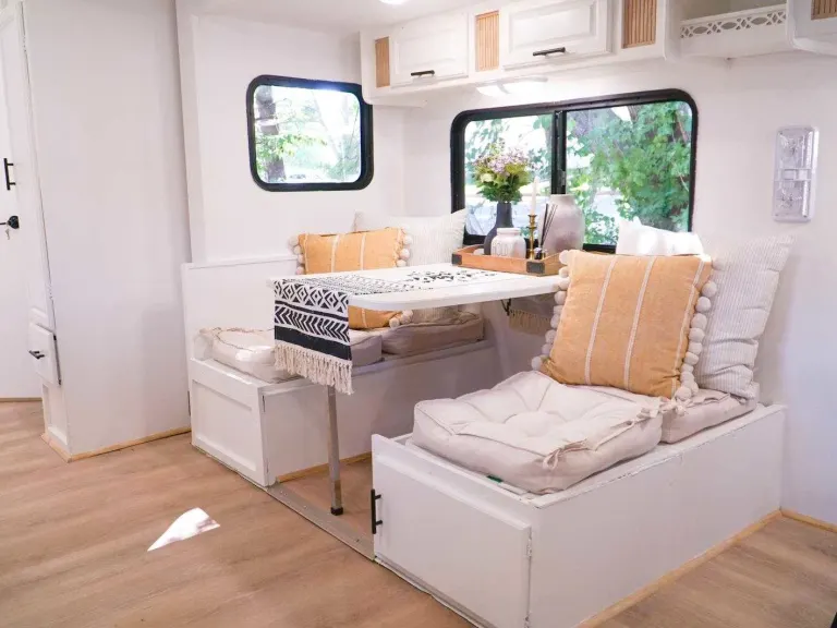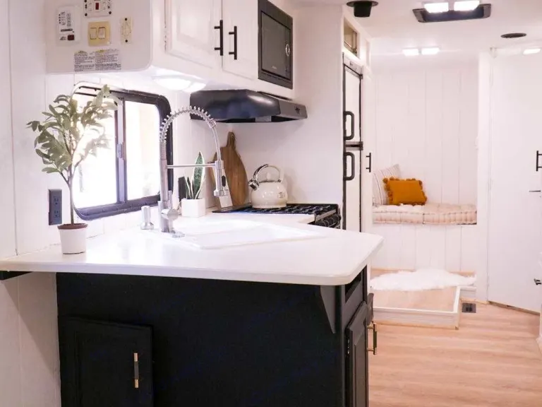 Zen-Glamper is a 2006 Fleetwood Terry, beautifully renovated and redesigned, for the ultimate outdoorsy, glamping experience! She is fully stocked with everything you need to make your camping trip comfortable, easy, worry-free, and fun! Can comfortably sleep 6.Full kitchen with all the things