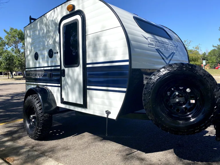 Offroad ready Sunset Sunray 109 travel trailer. This trailer it meant to be taken off the beaten path and boondock.